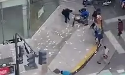 Un hombre forcejeó con un delincuente que intentó robarle una mochila con $ 7 millones. Los billetes cayeron del bolso y el viento los voló