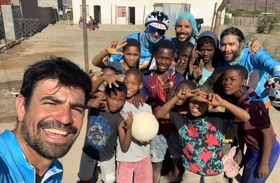 «Ciclistas cordobeses enseñan a bailar La Konga a niños en Namibia»