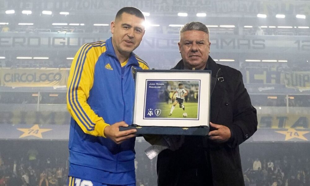 El presidente de la AFA fue silbado en pleno homenaje y también hubo insultos contra Riquelme en una Bombonera con clima tenso.