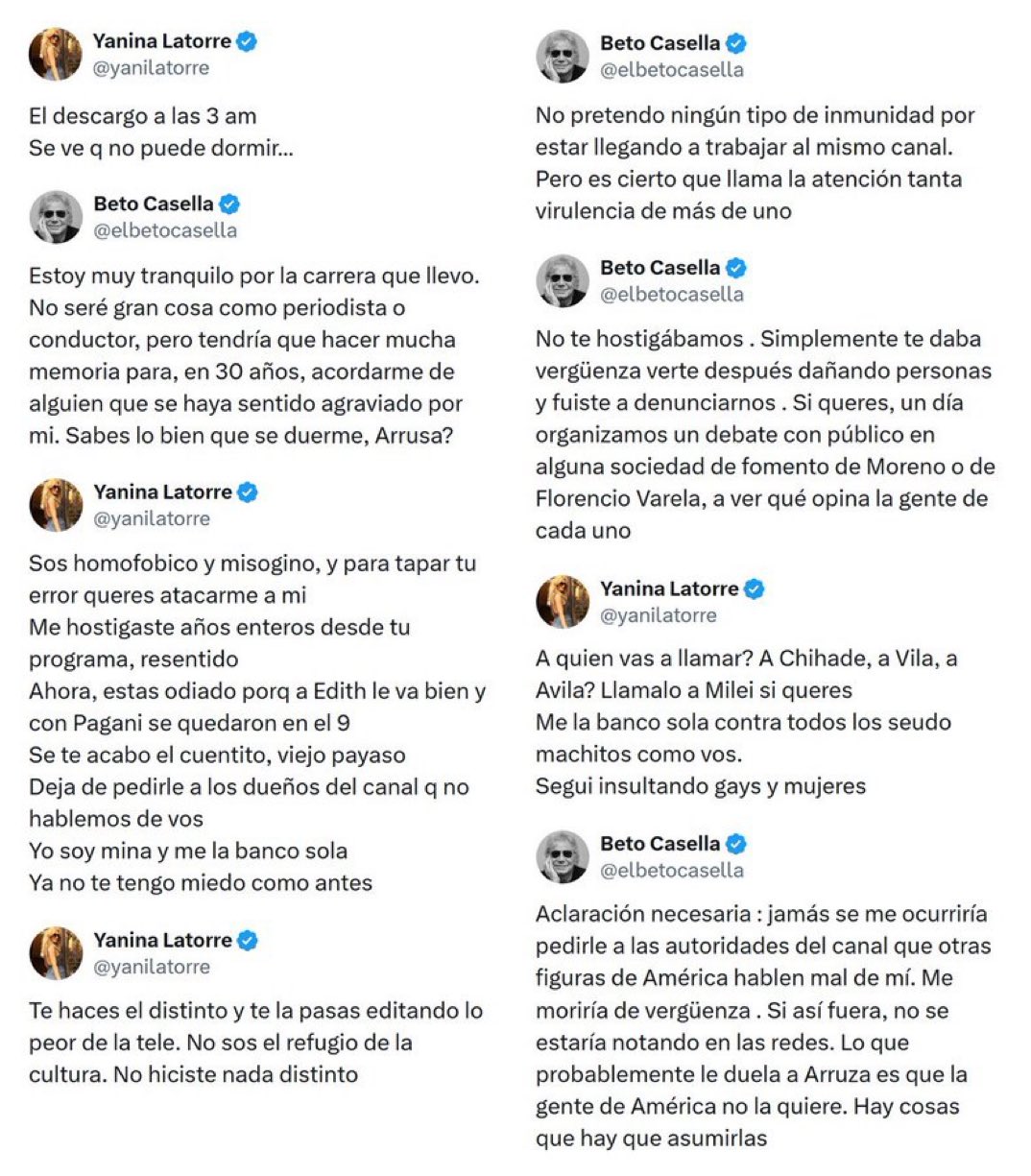 Ni La pantalla todavía no se encendió, pero el incendio ya empezó. A días del debut de Beto Casella en América TV, la polémica explotó en redes sociales con una protagonista inesperada: Yanina Latorre. El cruce fue feroz, personal y con acusaciones gravísimas que reavivaron un conflicto de años.